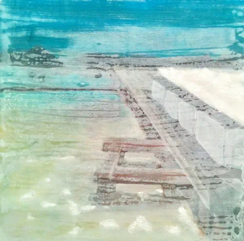 Sand, Acryl und Öl auf Leinwand gestaltet.